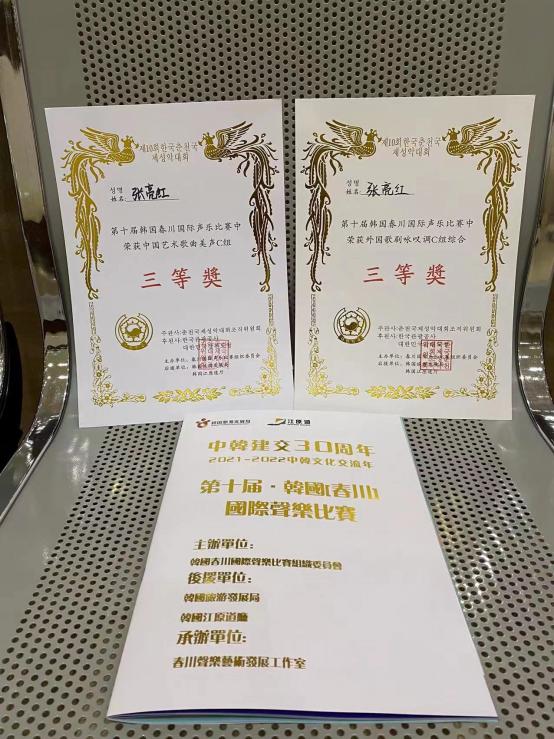 2022年7月18日,第十届“韩国春川国际声乐比赛”在辽宁沈阳盛京大剧院圆满落幕,来自国内各地的300多名青年歌唱家参加此次比赛。公司青年教师张亮红博士、王博渊博士参加此次比赛,并荣获“中国艺术歌曲美声教师组”三等奖及“外国歌剧咏叹调教师组”三等奖两项。
