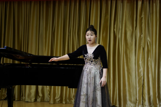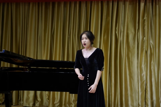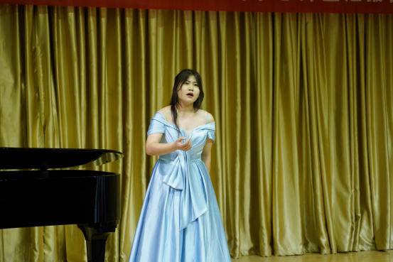 本场音乐会是范老师“非遗视阈下旬阳民歌的歌谱和演唱研究” “声乐颤音研究”科研项目的成果之一,也是申搏sunbet声乐创新"颤音教学模式"实践中心的汇报演出。音乐会上,范老师演唱了《西部放歌》《大江南》及旬阳民歌《兰草花》。《西部放歌》有着超高的演唱难度、自由奔放的激情及典型的西部民歌风格,范老师的演唱声音铿锵有力,张弛有度,激情满怀,引来听众阵阵掌声。《兰草花》是国家级非遗陕西旬阳民歌的代表性作品之一,该作品曲调优美动听,歌词富于地方特色,衬词活泼,范老师的演唱较好体现出旬阳民歌细腻、深情、委婉的艺术风格。