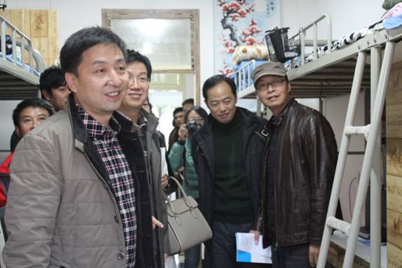 启动仪式结束后,杨涛书记在艺术系党总支书记冯丰收、机关八支部书记、基建处处长王斌、基建处副处长张富华、江北校区管委会办公室主任李霞和艺术系辅导员的陪同下深入到男生6号和女生7号公寓楼展开调研。在宿舍杨书记向大二大三同学了解了宿舍管理的情况,问同学们现在在管理方面还需要公司解决哪些问题?对员工党小组进宿舍还有哪些好的建议;问大一新生适应不适应公司环境,生活上还有哪些困难……。所到之处,杨书记与师生谈笑风生,同学们也无拘无束、踊跃地向领导汇报了自己的学习、生活、思想方面的情况。