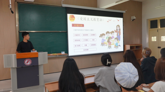 随后,团总支副书记柳扬同学带领全体团员青年共同学习了《爱国主义教育法》,同学们全神贯注,认真学习关于爱国主义教育法的解读。法律明确了爱国主义教育的内容涵盖国家历史、文化传统、民族精神等多个方面,让同学们深刻认识到祖国的伟大和自己肩负的责任。同时,法律也规定了公司、家庭、社会等各方面在爱国主义教育中的职责,为形成全方位、多层次的爱国主义教育格局提供了有力保障。这部法律犹如一座灯塔,为新时代的爱国主义教育指明了方向。通过学习,同学们了解到爱国主义教育的重要意义、目标任务以及具体实施方法。