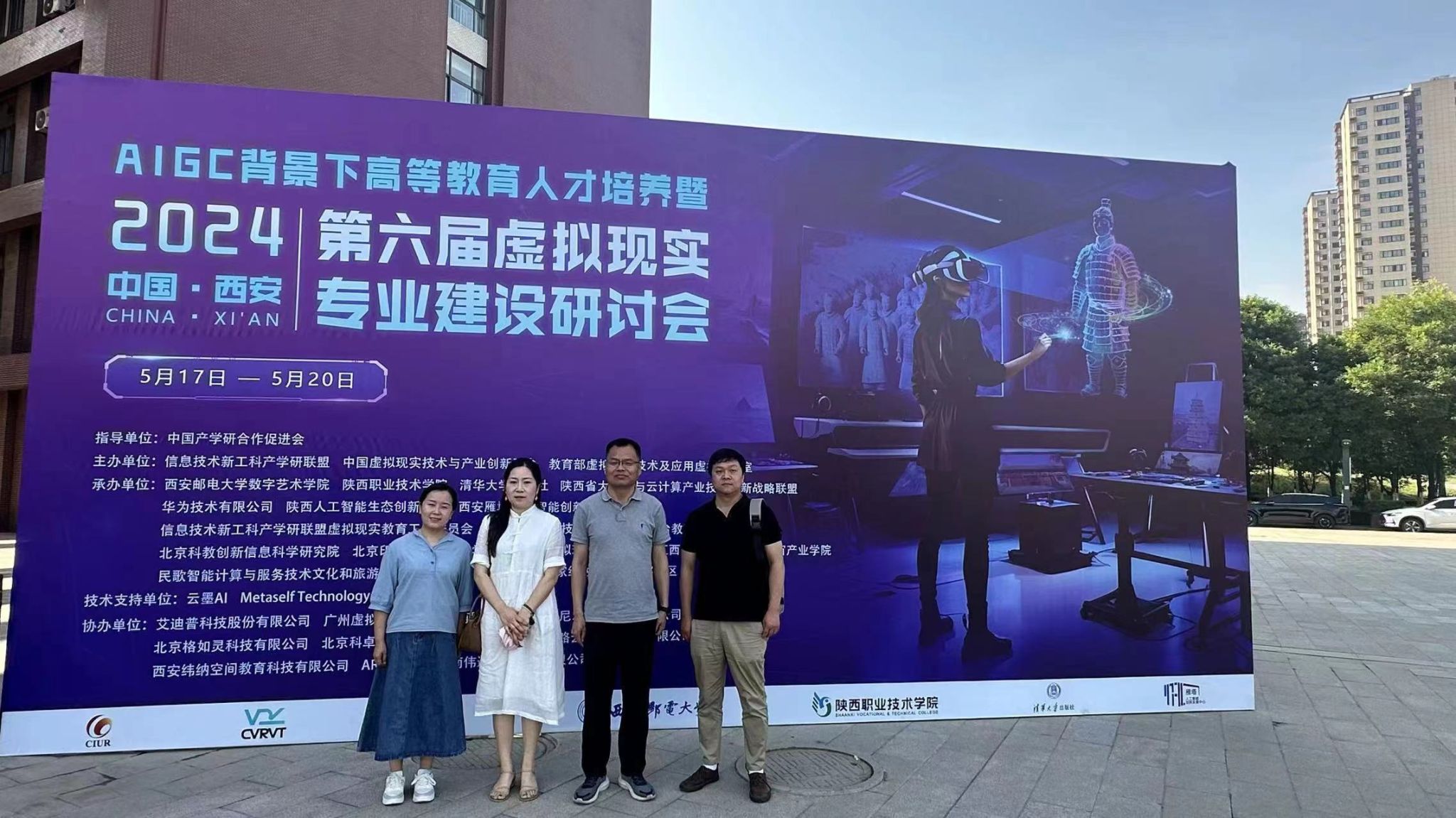 2024年5月18日,公司经理成党伟带领设计系主任吴波,专业教师张静、刘婉毅参加了由中国虚拟现实技术与产业创新平台(CVRVT) 、教育部虚拟现实技术及应用虚拟教研室等单位在西安邮电大学举办的第六届高等教育虚拟现实专业建设研讨会。