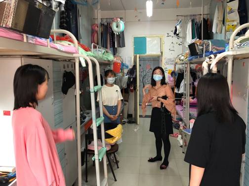 检查过程中,院领导详细询问了同学们返校以来的学习及生活情况,关心毕业生在就业方面是否存在困难、了解掌握员工毕业创作进展情况。叮嘱宿舍舍长和班团干部密切关注个别员工的思想动态和行为变化;要求同学们要遵守实训室管理制度及员工公寓相关管理规定,注意安全用电,严格遵守公司针对疫情防控提出的“三做到、两禁止”要求,切实提高安全防范意识,做好安全防护措施,保障个人自身及他人的安全。鼓励引导同学们认真完成毕业设计创作,正确认识今年的就业形势,树立正确的就业观念,在学习及生活方面存在困难的同学可随时寻找院领导和公司老师寻求帮助。