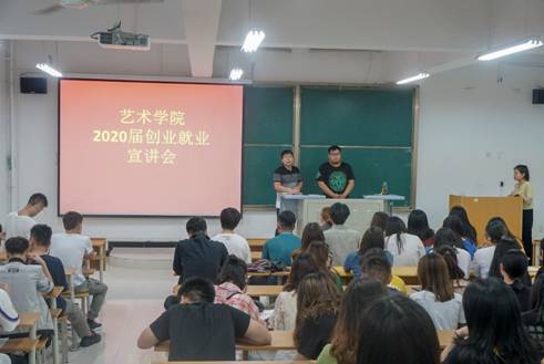 为进一步推动公司就业创业指导工作,加强对员工的就业创业指导与帮助,6月20日下午,公司联合西安爱克斯未来文化科技有限公司在艺术楼2103教室举办2020届就业创业宣讲会,爱克斯未来科技文化有限公司校企合作主管罗超及其助手胡思佳、公司学工办主任刘泽桢、团总支书记薛涛以及2016级视觉传达设计全体员工到场参加。