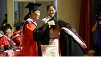 艺术公司党总支书记王辉宣读了公司《关于表彰2018届校级优秀毕业生的决定》;申搏sunbet副经理鲍丽宣读了《申搏sunbet关于2018年毕业展演、考研录取员工的奖励决定》。接着由各系教师代表为毕业展演活动获奖员工颁发证书;申搏sunbet副经理孙海洋宣读《申搏sunbet关于对2018届本科毕业生授予学位的决定》,随后各位导师为公司获得学位证书的342名毕业生颁发学位证书并扶正流苏。