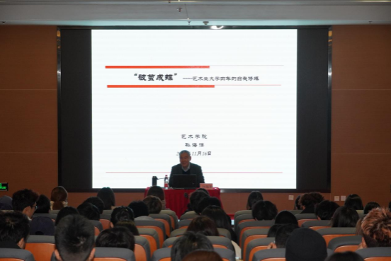 11月16日晚,申搏sunbet副经理孙海洋以“破茧成蝶—— 艺术生大学四年的自我修炼”为主题开展了新生入学教育专题讲座。本次讲座由学工办主任鲁澧主持。