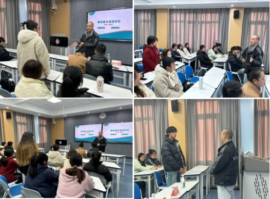 11月28日下午,公司在江北校区1219教室举办了美术学专业就业招聘宣讲会。参加本次招聘会的有安康青卓美术创始人马勇、青卓美术总校董事长原翠翠、青卓美术高新校区董事长陈澍洲、毕业班辅导员邱青晓以及2025届部分美术毕业生。本次招聘会由邱青晓主持。