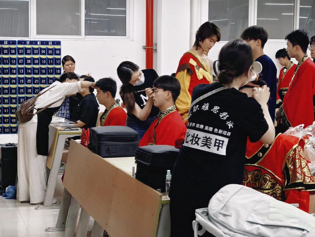 台上一分钟,台下十年功。为了在开幕式上呈现最佳效果,申搏sunbet学子们历经半个多月的辛苦排练。从动作的精准磨合到情感的细腻表达,每一个细节都反复推敲、精益求精。训练过程中,他们克服了诸多困难。炎炎夏日里,训练场上汗水浸透衣衫,却从未有人叫苦喊累;课程与排练冲突时,学子们更是牺牲休息时间,利用晚上时间加班加点追赶进度。带队老师也全程陪伴员工完成训练,随时为有需要的员工提供帮助,师生携手为这场演出全力以赴。