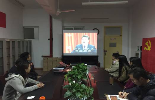 艺术公司党总支组织院领导、总支委员、支部委员、工会分会委员、系主任、全体党员教师、全体行政人员,在江北校区2206室认真聆听了习近平总书记作的大会报告。习近平总书记代表第十八届中央委员会向中国共产党第十九次全国代表大会作了题为《决胜全面建成小康社会 夺取新时代中国特色社会主义伟大胜利》的报告。在习近平总书记长达三个半小时的报告中,我们清楚的认识到,中国共产党第十九次全国代表大会是在全面建成小康社会决胜阶段、中国特色社会主义进入新时代的关键时期召开的一次十分重要的大会。习近平总书记的报告高瞻远瞩、举旗定向,大气磅礴,是中国共产党不忘初心、牢记使命、继续前进的政治宣言,是决胜全面建成小康社会、夺取新时代中国特色社会主义伟大胜利的进军号角,是开启全面建设社会主义现代化强国新征程、实现中华民族伟大复兴中国梦的行动指南,是马克思主义中国化的新飞跃,是民族精神和时代精神之精华,是照亮中华民族伟大复兴前程、指引我们党夺取“四个伟大”新胜利的思想灯塔。