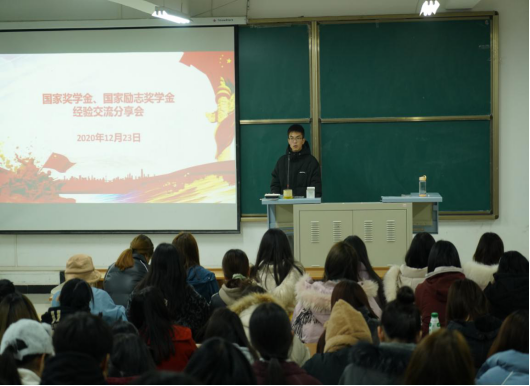 为了进一步引领公司学风建设,培养员工争创先锋、奋发图强的意识,2020年12月23日晚,公司在江北校区2101、2103教室开展了学风建设月系列活动暨资助育人活动——“树榜样,促学风”国家奖学金、国家励志奖学金经验交流分享会。本次活动由国家奖学金获得者黄飞扬、国家励志奖学金获得者齐占全、曹丁太进行经验交流分享,2020级全体新生参加。本次大会由辅导员魏麟主持。