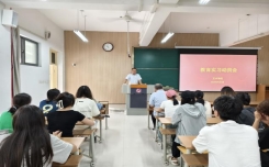 副经理孙海洋指出毕业实习是理论与实践相结合的重要环节,参加公司教育实习的师范专业同学要认真完成备课、听课、说课、讲课、社团活动指导和教育调研等工作;进行分散自主实习的非师范专业同学应遵守公司和实习单位的各项规章制度,严格遵守实习纪律,严格要求自己,树立正确的就业目标和就业期望值,全面做好就业实习;并从学科教学工作,实习手册与评定表的书写做了规范说明,要求同学们要以准教师的身份严格要求自己,注重思想认知和工作能力的提升,弘扬优良的师德师风。同时领学了《中华人民共和国学位法》。