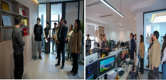 公司走访团首先来到安康墨白影视有限公司,与公司负责人饶会全进行了合作交流座谈。黄娟介绍了公司办学特色、人才培养情况,并希望双方在人才培养、员工实习就业等方面进行全方位深度合作,积极为毕业生创造更大的成长和发展空间,搭建更好的平台为毕业生就业创业提供服务。饶会全介绍了关于我们、主要业务,并现场展示了公司所承担的项目以及成功案例,为同学们上了一堂生动的专业实践课。会上,双方签署共建毕业生就业实习基地协议。
