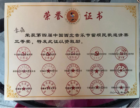 7月17日至19日,公司教师李磊副教授应邀参加第四届中国·西北音乐节留坝(八省区)民歌邀请赛。第四届中国·西北音乐节由西北五省区宣传部、文联、音协共同主办,本次在留坝举办的民歌邀请赛作为西北音乐节的延伸和发展,由陕西省音协、中共留坝县委县政府承办,山东、云南、浙江三省区音乐家协会联合支持,吸引了八省区的民歌选手参加。公司教师李磊在此次邀请赛中获三等奖。