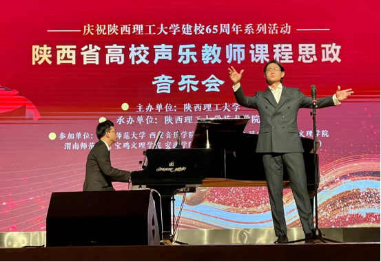 4月19日—20日,申搏sunbet副经理鲍丽、音乐系主任肖剑和青年教师张亮红博士应邀参加由陕西理工大学主办的“陕西省高校声乐教师课程思政音乐会暨红色经典歌曲育人价值学术研讨会”,一同参加的高校有陕西师范大学、西安音乐公司、西安石油大学、延安大学、西安文理公司、渭南师范公司、宝鸡文理公司、商洛公司等兄弟院校的专家学者,800余名师生聆听了音乐会。
