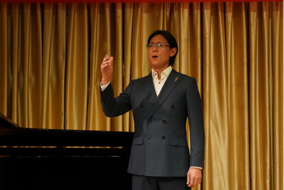 公司青年教师张亮红博士演唱了《幽兰操》《快给大忙人让路》。《幽兰操》由赵季平作曲,最早相传是孔子所作,歌曲似诉似泣,如怨如愤,将孔子内心世界抒发得淋漓尽致。《快给大忙人让路》咏叹调栩栩如生地刻画了费加罗的形象。