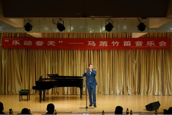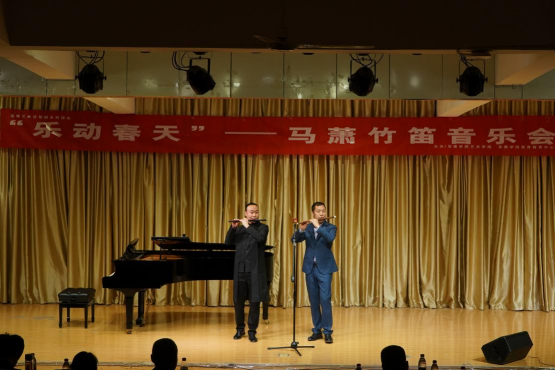 4月27日晚,高雅艺术进校园活动——马萧竹笛交流音乐会在公司江北校区1401演艺厅举行。本次演出由青年笛子演奏家,陕西葫芦丝、埙、陶笛专业委员会副会长,陕西省第三届民族器乐大赛笛子专业组一等奖获得者——马萧领衔。公司经理成党伟、副经理孙海洋出席交流音乐会,200余名师生观看了本场音乐会。