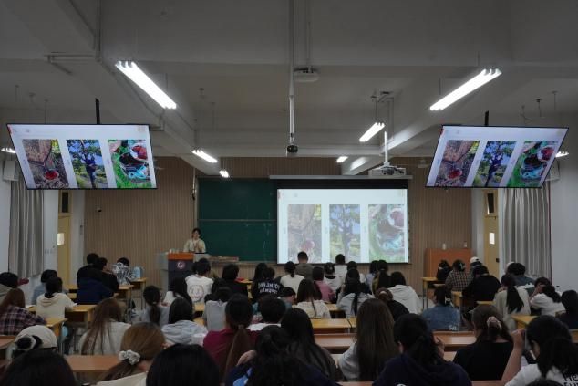 为了让同学们直观感受到非遗漆艺的艺术魅力,袁老师现场为大家示范了如何做一把非遗“飘漆”扇,同学们热情高涨,积极参与互动体验,通过不同漆颜色的搭配完成一件非遗作品,给现场师生留下了深刻的印象。通过此次讲座,同学们纷纷表示传统手工艺具有极大的魅力,提升了大家对美的感知、欣赏的能力。
