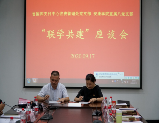 为有效促进基层党组织之间的交流学习,进一步发挥党员先锋模范作用,提高党组织整体建设水平。2020年9月17日下午,艺术公司党总支全体总支委员、党建专职组织员和师生支部书记在江北校区逸夫科技楼九楼会议室参加了校内结对共建单位直属八党支部与校外共建单位省国库支付中心收费管理处党支部“联学共建”座谈会,公司党委副书记杨行玉、组织部部长屈险峰、发规处处长戴承元应邀出席,座谈会由直属八党支部书记田兆杰主持。