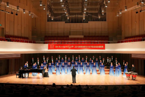 图3:合唱团代表安康市参加陕西省“唱支山歌给党听”大家唱暨全省群众合唱集中展演活动