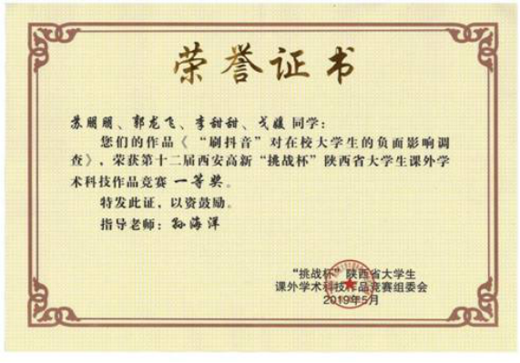 图30:公司员工获得“挑战杯”陕西老员工课外学术科技作品竞赛一等奖