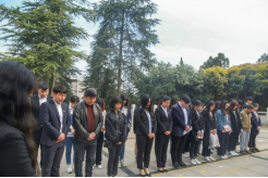 “我们是五月的花海,用青春拥抱时代;我们是初升的太阳,用生命点燃未来”大家集体齐唱团歌。在热烈的团歌声中,刘泽桢老师带领大家参观了烈士陵园,并向同学们详细讲解了牛蹄岭战役的内容和重要意义,以及孟俊奇团长的英勇事迹。刘老师向同学们寄语:缅怀先烈,继承遗志,立志成才,报效祖国。