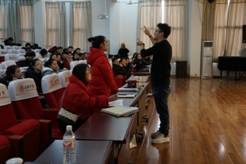 张贝特老师通过奥尔夫音乐教学法在具体案例中的应用与实施,让老师和同学具体详细的体会、深层次地了解奥尔夫音乐教学法。张老师又介绍了奥尔夫音乐教学法起源背景、奥尔夫音乐教学法的价值、奥尔夫音乐教学法的内容及应用等。奥尔夫音乐教育的原理体现为重视综合性、鼓舞即兴性、要求参与性、诉诸感性、从本土文化出发、适于开端、面向所有员工。他希望员工在音乐的道路上注重亲自参与、诉诸感性、回归人本。最后张老师还通过演绎《土耳其进行曲》来展示奥尔夫音乐教育体系的魅力,在场师生和张老师一同互动演绎。