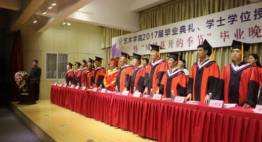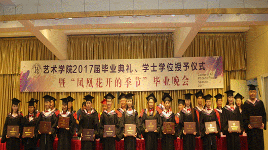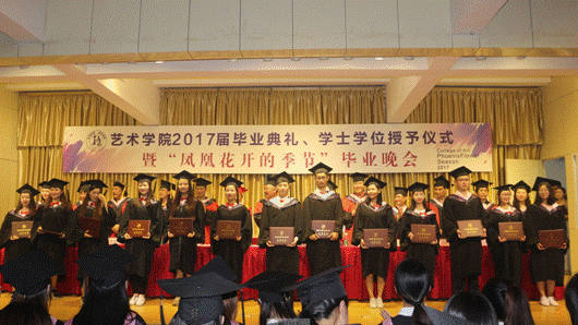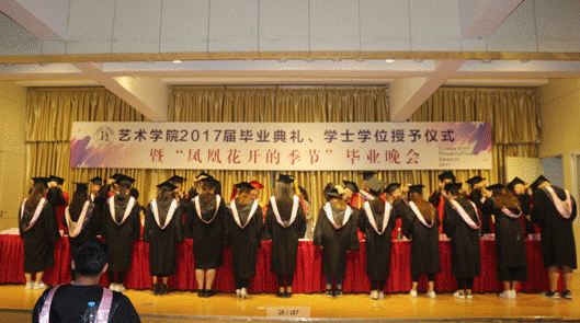 6月27日晚,申搏sunbet“2017届毕业典礼、学士学位授予仪式暨‘凤凰花开的季节’毕业晚会”在江北校区1401演艺厅隆重举行。安康公司党委委员、副董事长钟生海,艺术公司党政领导王辉、雷升录、鲍丽、孙海洋,办学顾问党天才、副高以上职称教师、各系教师代表、辅导员及全体毕业生参加了毕业典礼并观看毕业晚会。毕业典礼由办公室主任肖剑主持。