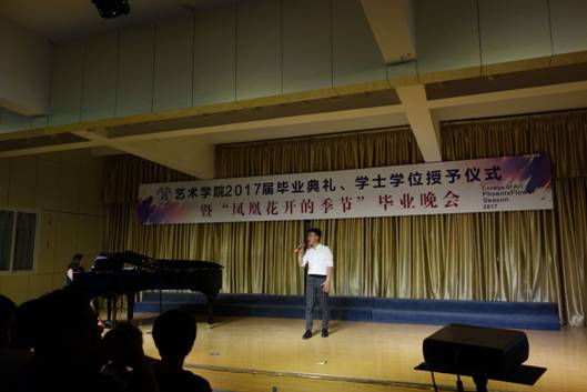 六月注定是一个分别的季节,无论毕业大戏多么的华丽,绚烂过后,他们即将与我们挥手告别。晚会邀请了员工周翰祥为大家演唱了歌曲《凤凰花开的路口》,同学们随着歌声,用复杂的心情告别熟悉的校园,告别昔日的同窗,告别了一段纯真的青春,一段年少轻狂的岁月,一个充满幻想的时代……所有的话语都化作歌声传达出来,在难舍难分的气氛中,教师代表冯宏钊等十几名同志现场为毕业生赠送了小礼品——毕业寄语卡片。