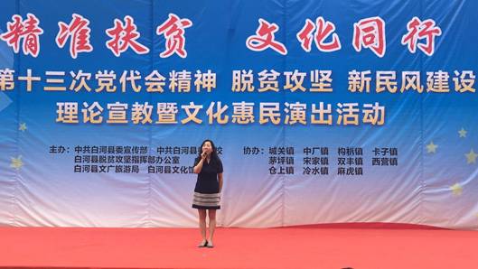 6月13日,艺术公司党员教师田川、李磊同志,按照艺术公司党总支“精准扶贫”工作安排,赴白河县卡子镇参加了由白河县文化馆主办的“精准扶贫,文化同行”走进白河县卡子镇中心小学文化惠民演出活动。田川和李磊分别演唱了歌曲《我爱你中国》和《美丽家园》,引起观众的阵阵掌声。演出结束后,两位老师又与白河县文化馆卢传珍馆长和相关文化干事对结对帮扶工作进行了交流和探讨。这意味着公司精准扶贫、文化下乡工作正式迈出了坚实的第一步,将会在申搏sunbet“精准扶贫,文化同行”的惠民演出、合唱排练、舞台设计方面进行更多的交流。