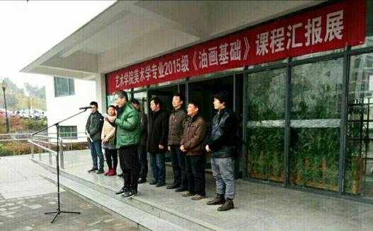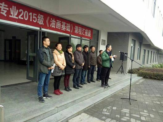 12月26日上午9点50分,在艺术楼门前举行了2015级《油画基础》课程汇报展开幕。莅临此次画展的领导老师有:申搏sunbet教务处副处长杨哲教授,艺术公司党总支书记王辉老师,申搏sunbet副经理雷升副教授、副经理孙海洋老师,学工办主任刘泽桢副教授,骨干教师杜敏副教授、原春鸣副教授、王胜选副教授、骆杨老师以及公司15级16级美术学专业的同学们, 本次画展由副经理孙海洋主持。