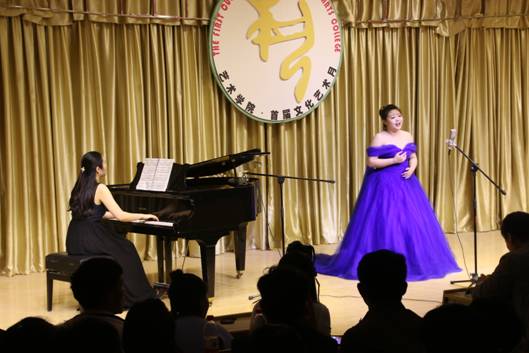 晚8时,周玲教授带领所教的6名声乐专业员工,为公司师生奉献了一场精彩的声乐音乐会。6名员工逐一登台,分别演唱了意大利民歌、歌剧咏叹调、二重唱、等各类声乐作品,展示了他们的精湛的演唱技巧,也展示和诠释了周玲教授声乐教学的成果和精髓。