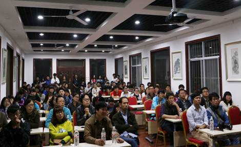 10月16日,西安美术公司博士生导师潘晓东教授,在我系校外实践教学基地——洛南县华阳写生基地学术报告厅,为我系视觉传达设计专业2014级员工做了“油画风景写生与创作”的专题报告,报告中潘晓东教授简述了油画的发展历史、重点分析了风景写生中对不同天气光线的把握、色彩风景写生的观察、写生的方法与步骤,最后结合自己的油画作品和大家共同分享了自己的创作经验,讲解写生与创作的关系。潘教授的报告深入浅出,精彩纷呈,同学们收益匪浅。这次学术报告也是我系首次将校外实践教学与学术交流活动相结合的一次尝试。对于进一步完善实践教学环节,提升教学效果有着良好的实际意义,为以后的写生采风实践教学提供了良好的借鉴。