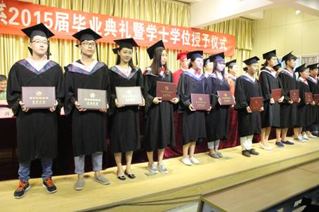 冯丰收书记宣读了公司关于对2015届优秀毕业生表彰决定和我系毕业展演获奖名单;雷升录副主任宣读了申搏sunbet关于对2015届本科毕业生授予学位的决定。接着各位导师为获奖同学们颁发了荣誉证书;为获得学位证书的毕业生颁发学位证书并为各位文艺学学士扶正流苏。今年我系共有267名毕业生,其中本科毕业生237人(235人授予文艺学学士学位),专科30人。