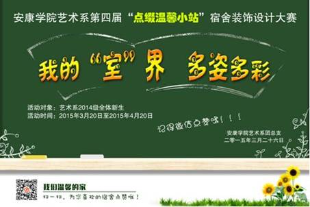 系团总支书记黄娟老师宣读了我系第四届“点缀温馨小站”宿舍装饰设计大赛的活动安排和实施方案。“点缀温馨小站”宿舍装饰设计大赛作为我系“艺术人生引领工程”的一个重要组成部分,其教育、实践、养成、美化的功能不可替代,希望团总支、系分会、各班级、各宿舍、各位同学认真落实。本届大赛有三项特色活动,一是充分利用团总支微信公众平台,开展“微信点赞”活动,以宿舍为单位,自主编辑图片,撰写宿舍宣传的微文进行新媒体形式的展示;二是充分发挥专业特色,利用专业模式,开展宿舍文化建设成果展板的评选,各个宿舍要结合自身的专业实践,相互融合,形成自己的作品进行展示,如艺术设计专业运用photoshop等软件自行编排设计,美术学专业可以手绘制作;三是进一步深入开展员工党员进宿舍、开展“墨韵书香读国学经典”等特色活动,从而实现员工道德情操、人文素养、审美情趣、创新能力的全面提升,打造艺术系独特的宿舍文化。