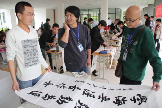 为了继承和弘扬中国书法艺术,丰富和繁荣校园文化生活, 2014年4月15日下午2点30分,由艺术系承办的申搏sunbet第四届“墨舞青春”软硬笔书法大赛决赛如期在江北校区举行。我们特别邀请了陕西省书协副主席、安康市书协主席马昌琪先生;陕西省美协副主席、安康市美协主席李剑平先生;安康市书协副主席程安先生;安康市美协副主席、西安市美术公司、陕西师大客座教授章长青先生担任本次大赛的评委,决赛仪式由艺术系学工办主任刘泽桢主持。