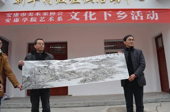 元月12日,天气晴好,阳光普照,在全国上下欢送银蛇载誉而去,欢迎骏马奔腾而来的日子里,申搏sunbet艺术系与安康市美术家协会联合举行送文化下乡活动。汉滨区双龙镇党委书记兼镇长李晓风率党政班子在双龙镇文化站配合艺术系与安康美协开展了此项活动。