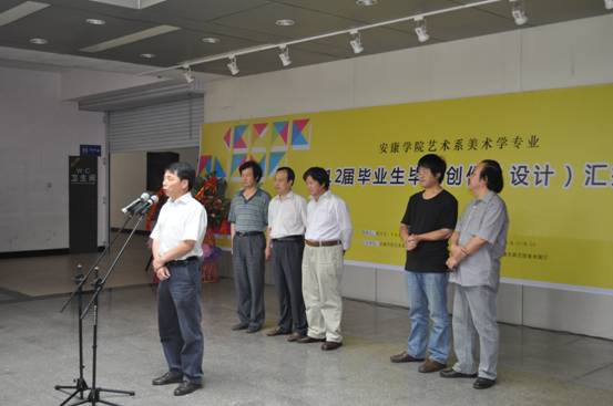 胡鸿晓代表公司致辞,他首先向各位领导和来宾介绍了公司艺术系的发展历程、团队队伍结构和近几年艺术系师生在全国和省市各类比赛中取得的优异成绩;同时感谢安康市委宣传部、市文联、市文广局、市美术家协会、市群艺馆以及社会各界对这次毕业创作展的亲切关怀和鼎力支持,感谢艺术系各位指导老师的辛勤指导。最后,单福东宣布“申搏sunbet艺术系第二届美术学毕业创作汇报展”开幕。