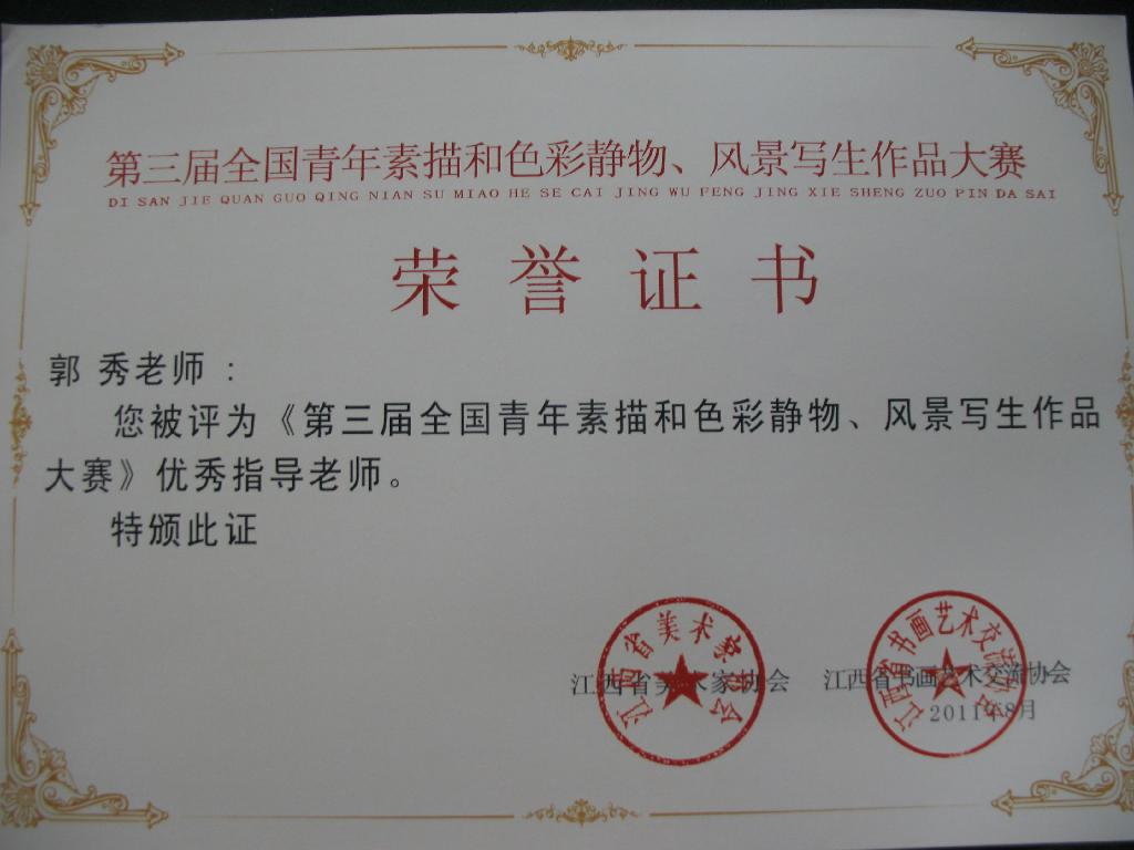 近日,第三届全国青年素描和色彩静物、风景写生作品大赛评选揭晓,大赛共评出金奖3名、银奖5名、铜奖12名、优秀奖200多名。参加此次比赛者多达5000余人,涉及26各省市,我系师生参加比赛获得佳绩,青年教师张静、王胜选及王盼盼等7名员工获得优秀奖,36名同学入选该赛。青年教师郭秀获得优秀指导教师荣誉,王胜选老师获得组织工作奖和优秀指导教师。