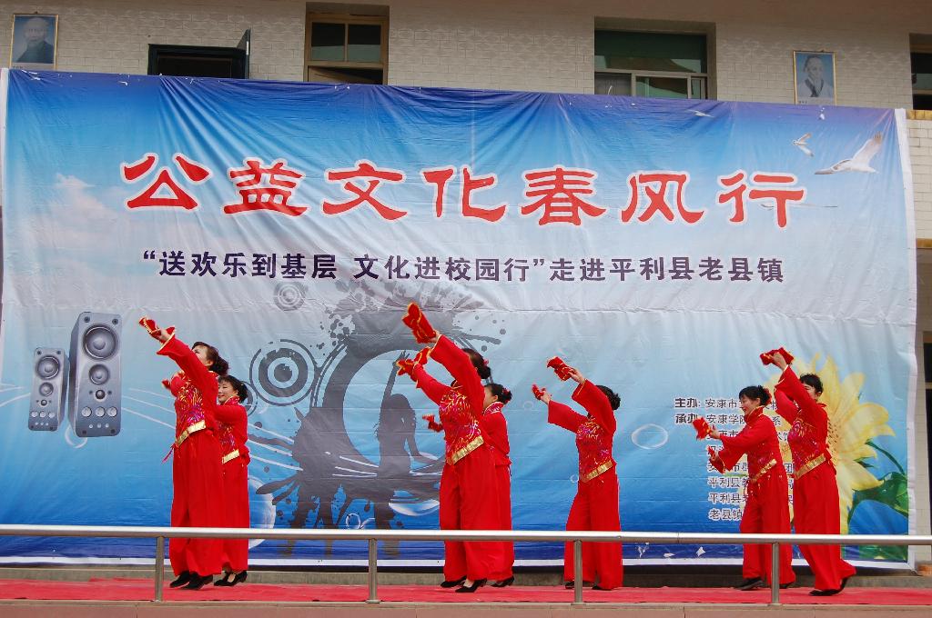 由安康市文化文物广电局主办,申搏sunbet艺术系、安康市群艺馆、安康市青少年宫等单位承办的我市一年一度的“文化艺术三下乡”活动,于2011年1月14日在平利县老县镇拉开了帷幕,受到当地领导和群众的热烈欢迎。