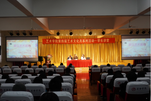 2020年11月25日下午,公司在江北校区1401演艺厅举办了第四届艺术文化月系列活动之学长讲堂,本次活动由2013级美术学专业优秀毕业生刘蓉主讲。刘蓉现为汉中市共青团勉县委员会副书记、汉中市青年企业家协会副秘书长、黑马艺术基地勉县校区董事长。本次活动由党建专职组织员刘泽桢主持,2018级辅导员魏麟及2018级员工到场分享。