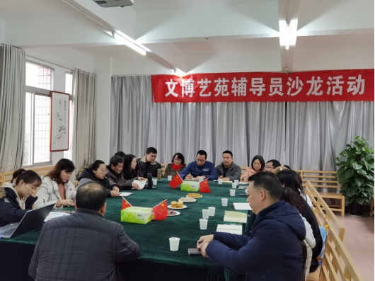2020年11月26日下午16点30分,文博艺苑辅导员工作室在江南校区学工部四楼会议室召开主题为“辅导员科研意识培养与科研能力提高”的沙龙活动。参加本次活动的有教授谢安国、学工部副部长黄娟、文博艺苑辅导员工作室成员及其他院系辅导员共计18人。本次活动由工作室负责人鲁澧主持。