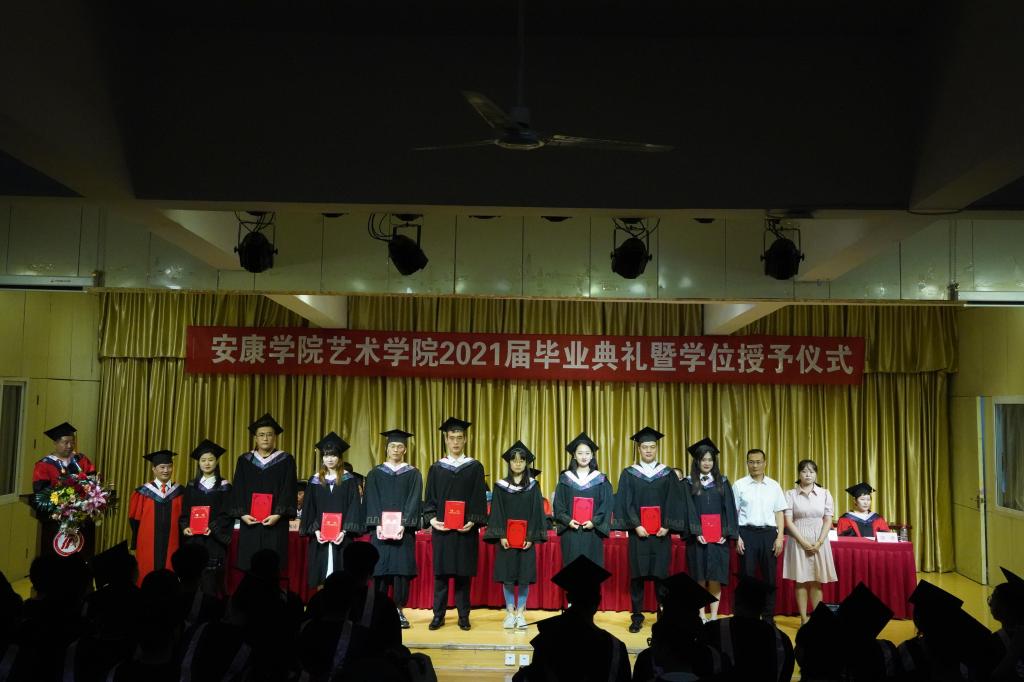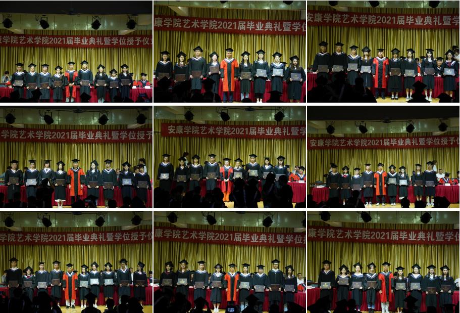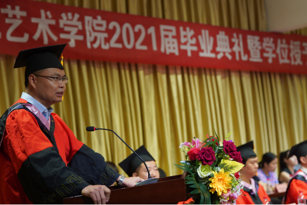 在学位授予仪式上,申搏sunbet学位授予导师分别为2021届音乐学、美术学和视觉传达设计专业的毕业生拨穗、颁发学位证书,并合影留念。