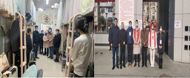 坚守一线,发挥先锋带头作用。当抗“疫”的冲锋号吹响,申搏sunbet学工战线践行初心,担当使命,冲锋在前,充分发挥一名党员就是一面旗帜的作用,集结成一股红色力量,铸成“抗疫堡垒”,为打赢疫情防控阻击战贡献着自己的力量。党总支书记黄娟和学工办主任鲁澧走访员工宿舍坚守疫情防控一线,深入员工宿舍排查安全隐患,充分发挥党员先锋模范作用。员工党支部书记魏麟、团总支书记黄梓轩主动报名党员先锋岗,轮流在校内进行疫情防控志愿服务。辅导员杨厚东、孟莉主动承担公司值班工作,及时对员工进行帮扶和管理,了解员工的心理疏导需求。