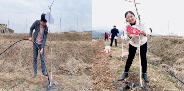 驱车近一个多小时抵达石泉县中池镇堰坪村,参加该村乡村振兴主题活动“我在中池有棵树”。在村干部的陪同和技术指导下,老师们在荒坡上育新苗、植新绿,为树苗锄草、浇水、修枝,并在认养牌上签上自己的名字,写下心愿寄语,用实际行动践行“绿水青山就是金山银山”的生态文明理念,提前庆祝全国第44个植树节。