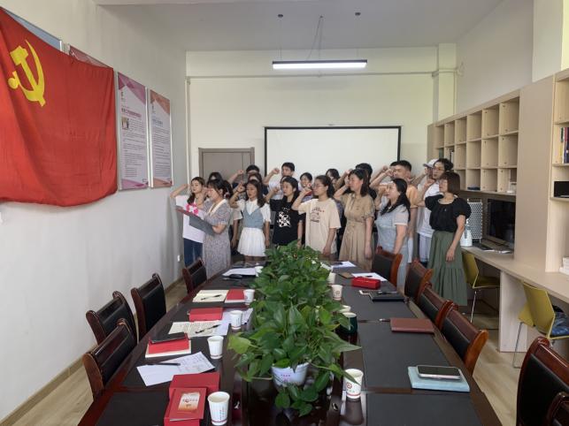 重温一遍入党誓词·怀抱一颗铮铮决心。员工党支部书记魏麟带领全体毕业生党员,重温入党誓词,面向党旗再次庄严宣誓,共同回忆入党时的铮铮誓词和奋斗决心,牢记党的宗旨和历史使命,让入党誓词成为指路明灯,让入党初心伴随今后成长。