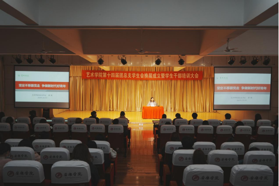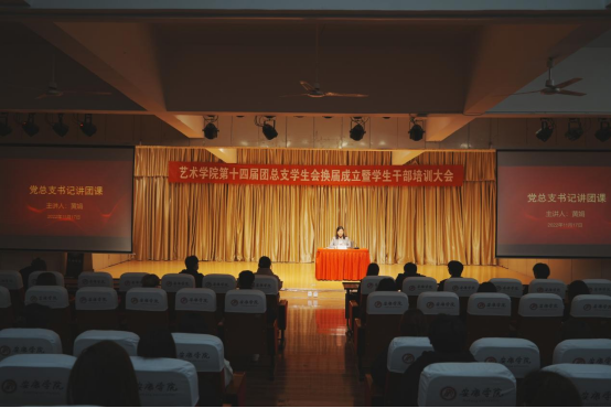2022年11月17日晚,申搏sunbet第十四届团总支员工会换届成立暨员工干部培训大会在江北校区1401演艺厅顺利召开。艺术公司党总支书记黄娟、学工办主任鲁澧、员工党支部书记魏麟、辅导员李博、邱青晓以及校员工会、各二级公司主席团代表、申搏sunbet全体团总支员工会成员参加了本次大会。大会由团总支书记孟莉主持。