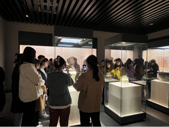 博物馆是记录和珍藏人类文明进程和成果的重要场所,是一座城市的名片、历史的底片、文化的芯片。在讲解员的带领下,视觉传达设计的同学们有序地参观了基本陈列和“安康市非遗展览馆”。参观过程中,同学们边仔细听讲解,边针对一些馆藏文物的设计原理和功能使用向讲解员提问,现场气氛十分活跃,同时大家也觉得收获颇丰,并表示将来想针对博物馆的文物进行一些文创设计活动。