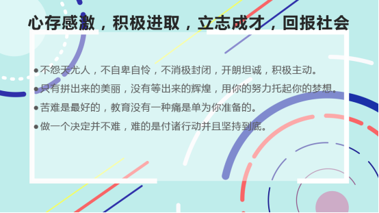 第二,广大受资助员工需更加合理、有效地使用奖助学金,以凸显国家资助政策的激励和育人功能,广大青年学子需心怀感恩、诚实守信、积极向上、励志成才。