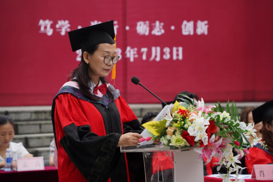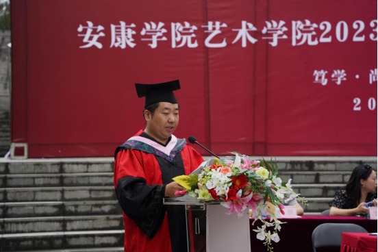 教师代表谢敏希望同学们能以妙笔生花的作品、别出心裁的设计、娓娓动听的音乐来谱就属于自己崭新的未来;更希望同学们以志存高远的勇气、恪己守正的骨气、自信乐观的底气来书写精彩的人生篇章。