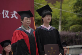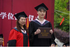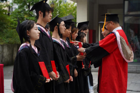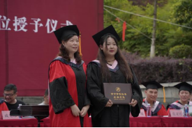 伴随着动听歌声,公司经理成党伟和导师们为毕业生们一一正冠拨穗,颁发学位证书,并合影留念。