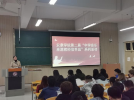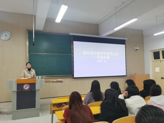 11月9日,申搏sunbet邀请陕西省教学能手、安康汉滨高中永红校区高级教师林繁,汉滨初中区级优秀教师、教学能手井莹两位老师在江北校区2202教室为第二届“中学音乐卓越教师培养班”做讲座。音乐系主任肖剑、教师代表鄢志莉及音乐学专业百余名员工参加了本次活动。